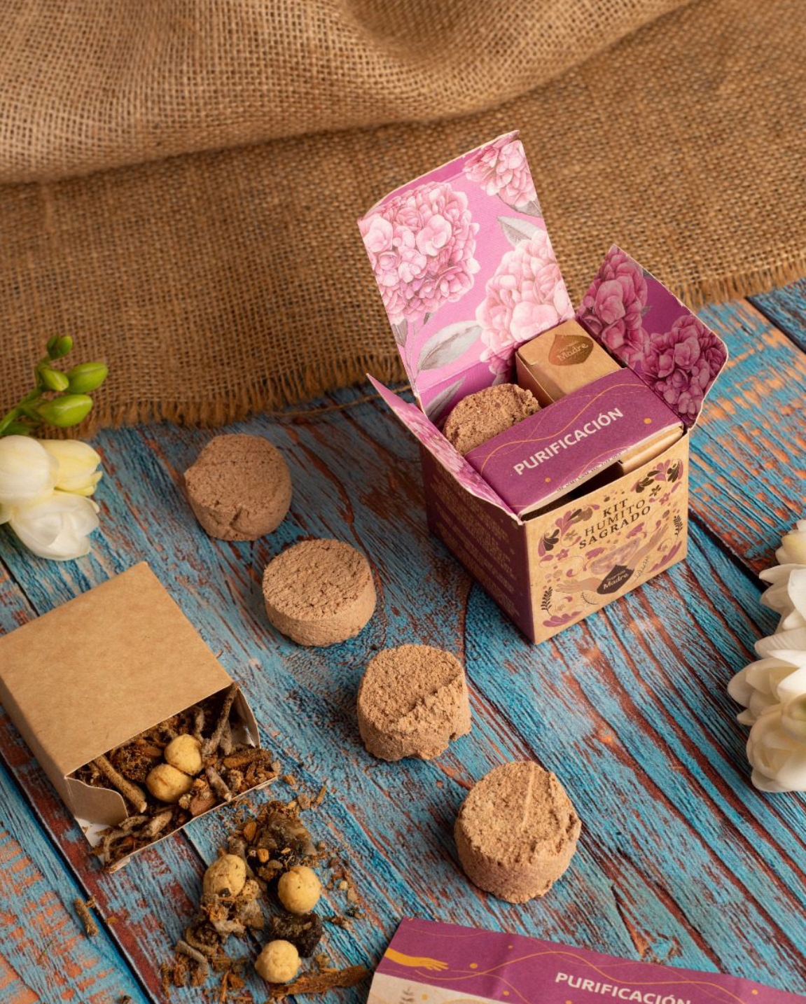 Contiene 4 carbones vegetales, perlas aromáticas, hierbas Aromáticas, Resinas Naturales, Aceites esenciales y Aglutinante Natural